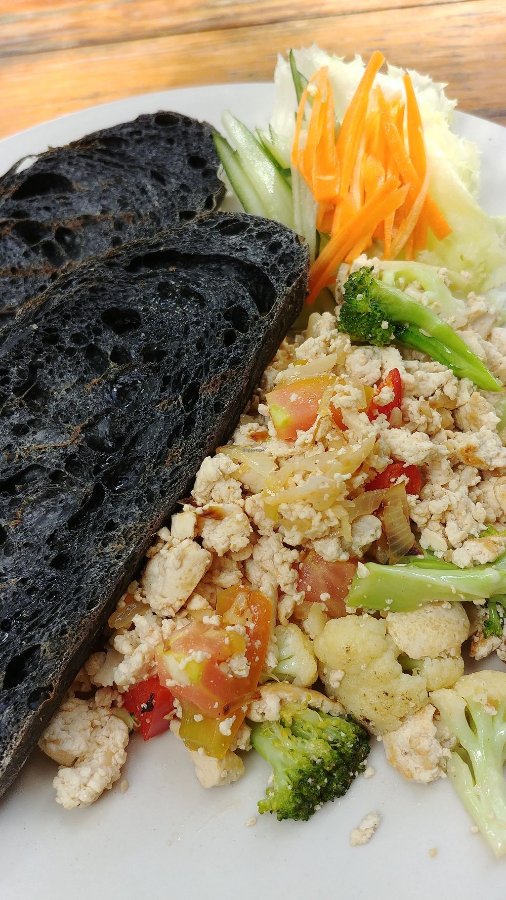 This was better than I had expected. Was thinking the tofu scramble would be basic, but it tastes good and the bread was also flavourful, toasted and drizzled with olive oil.