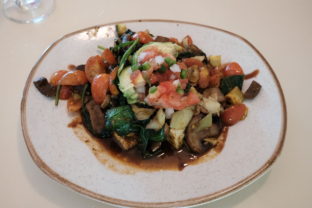 Read moreHouse ranchero marinated tofu, seared and topped with sauteed zucchini, spinach, mushrooms, charry tomatoes, and artichoke hearts Finished with avocado, pico de gallo, and balsamic glaze.