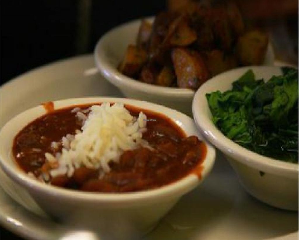 Serves meat, vegan options available. Soul food menu, includes a veg section with handful of main entrees, like mock chicken salad and sandwich, veggie rolls, barbecue tofu, and pasta. Each main is served with choice of sides, such as collard greens, candied yams, and others. Formerly Java, Juice and Jazz Creole. Reported closed, Mar 2018.