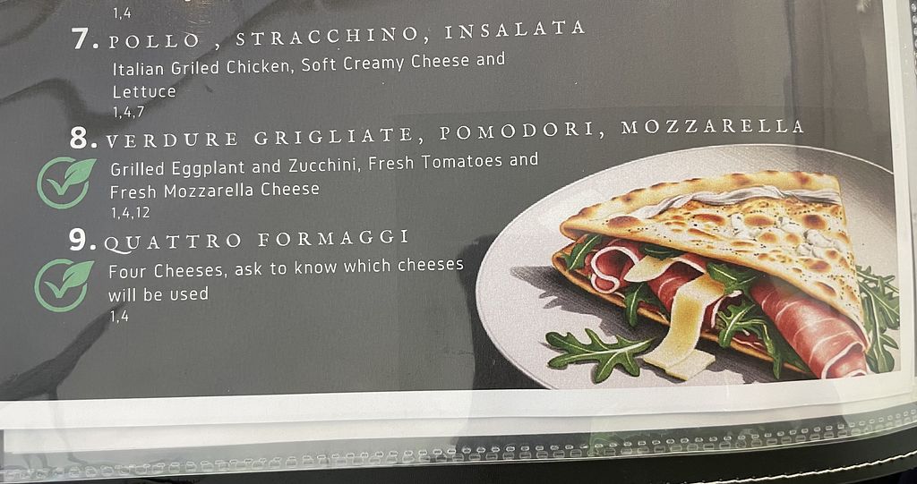 Very clear about what options where able to be veganised. I had a piadina with vegetables and olive cream. Very tasty. Staff was extremely friendly and helpful.