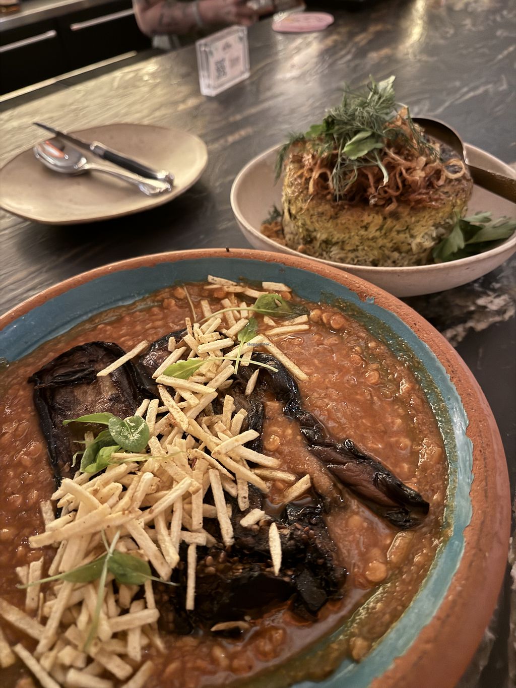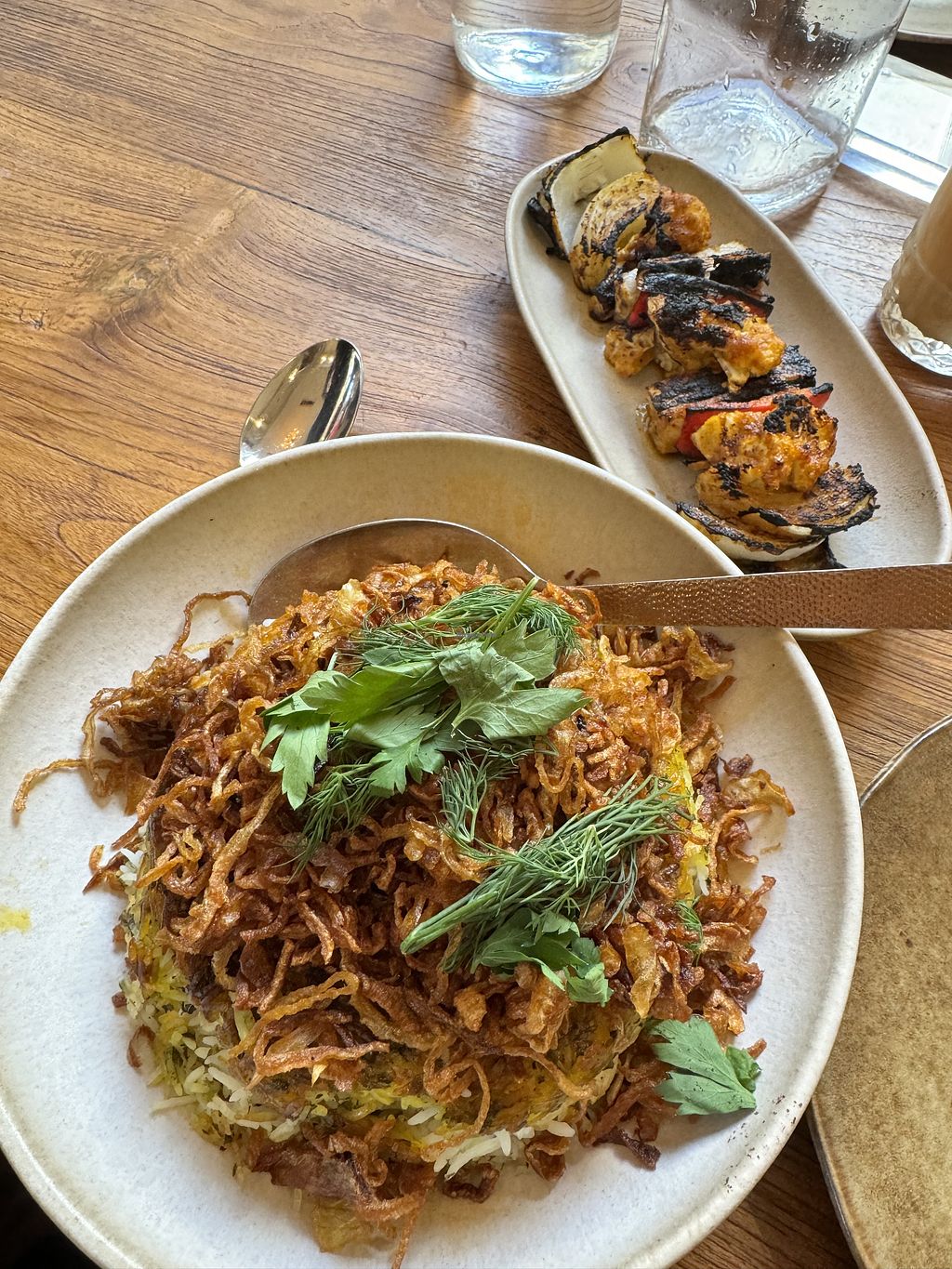 Sabi Polo (no butter) and vegetarian Gheimeh Bademjoon