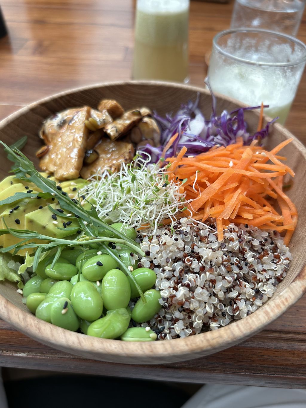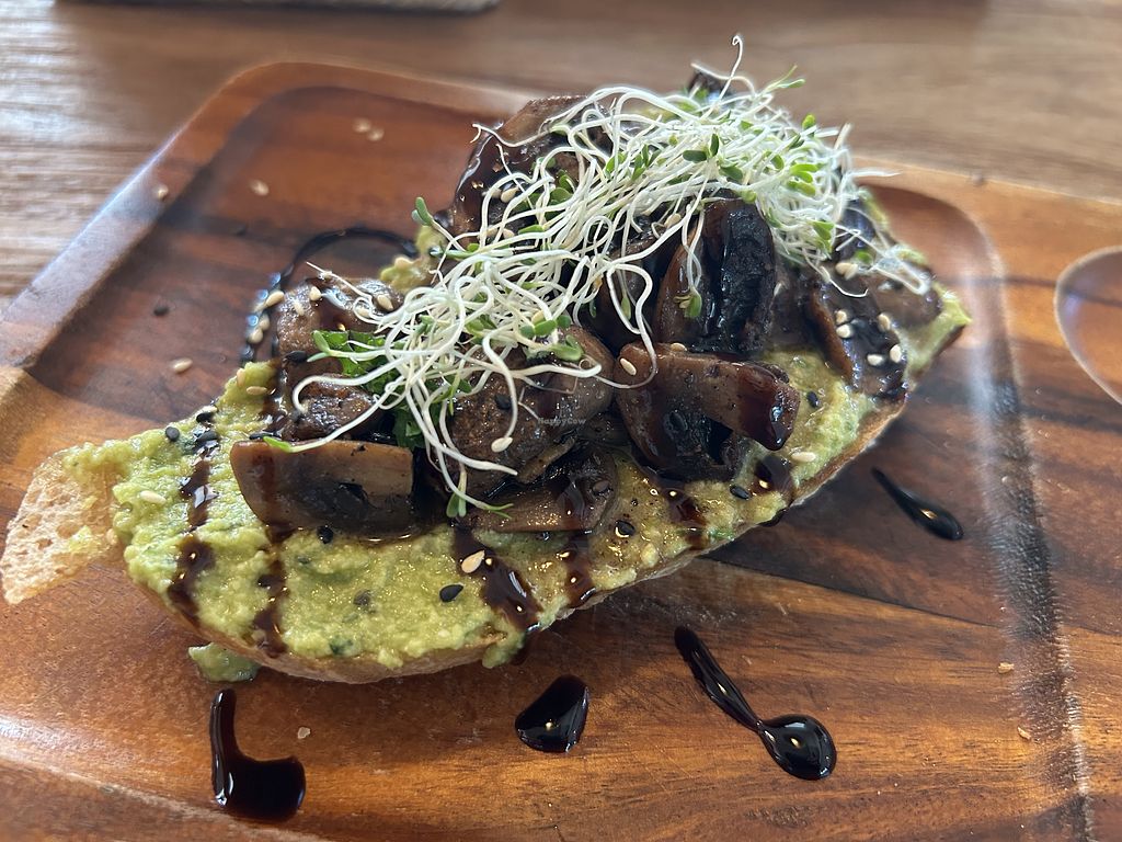 I only had an iced latte with soy milk and cold pressed juice, these were very good and the athmosphere too. They also offer a vegan açai bowl and a mushroom sandwich.