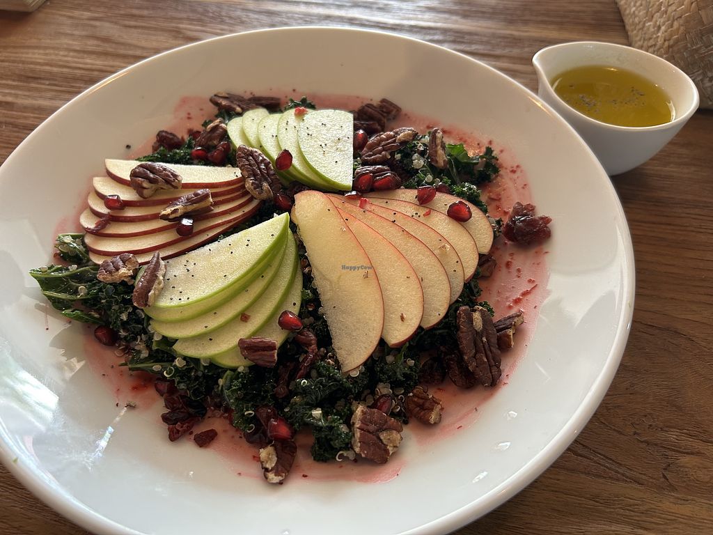 Beautiful space. The atmosphere is peaceful and chilled. The furnishings and decor is beautiful. I had the vegan Buddha bowl and it was tasty but would be better with a dressing. I also had a pressed juice which was nice.