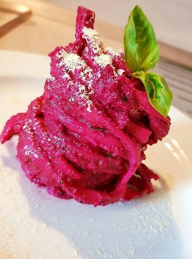Pasta with red cashew and basil