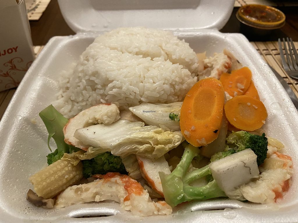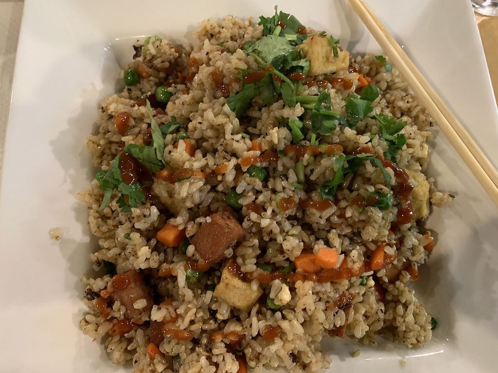 I went with my parents while I was visiting them to check out this place. They call it vegetarian when they sell actual meat (false advertising which is why I lowered it a star) but the vegan food is not bad and there’s an extensive list of vegan options. I got the vegan pork dumplings which were very crispy with a great sweet and sour (I think) sauce. Then I got the vegan pork fried rice. I’ll post photos below if I can. Thankfully nothing was over cooked and tasted great. The vegan egg and vegan ham appeared to be tofu but they tasted alright.