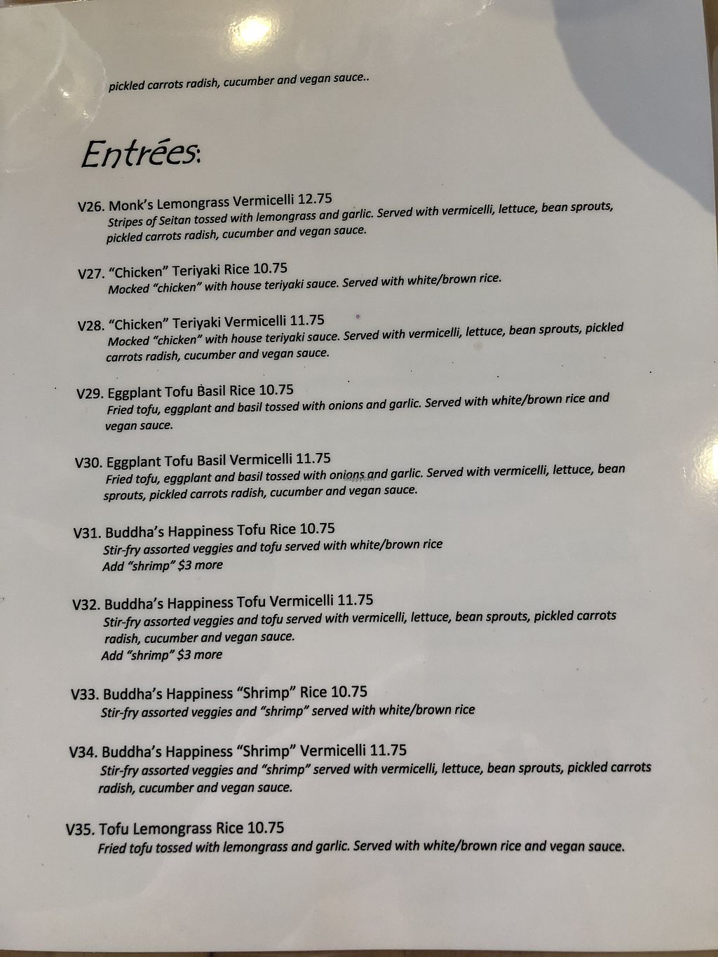 We’ve been here several times now and they have really good food and a separate vegan menu. I recently tried the vegan calamari and it was absolutely delicious. I usually get the Buddha’s Pho which is already vegan.