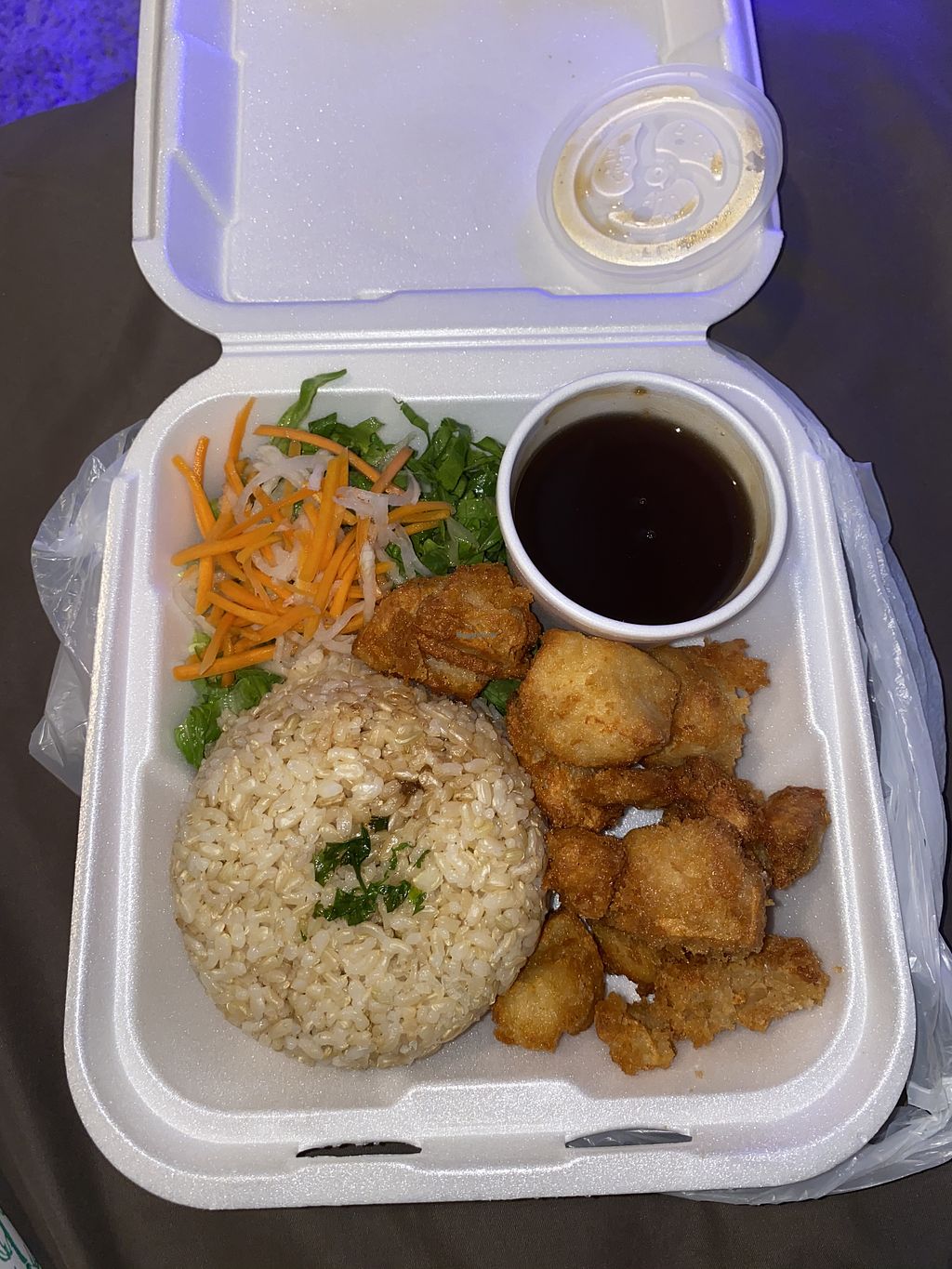 I got the orange “chicken” with brown rice. I believe the “chicken” is just tofu, but the way they fry it is different. It is a lot crispier than most places giving it a better texture of tofu then when it kind of just melts in your mouth. I liked it a lot. The orange sauce is more on the sweeter side than the orangey/spicy. I wanted to try the cream cheese avocado wontons but they were out for the day😒My total was $14 for the plate