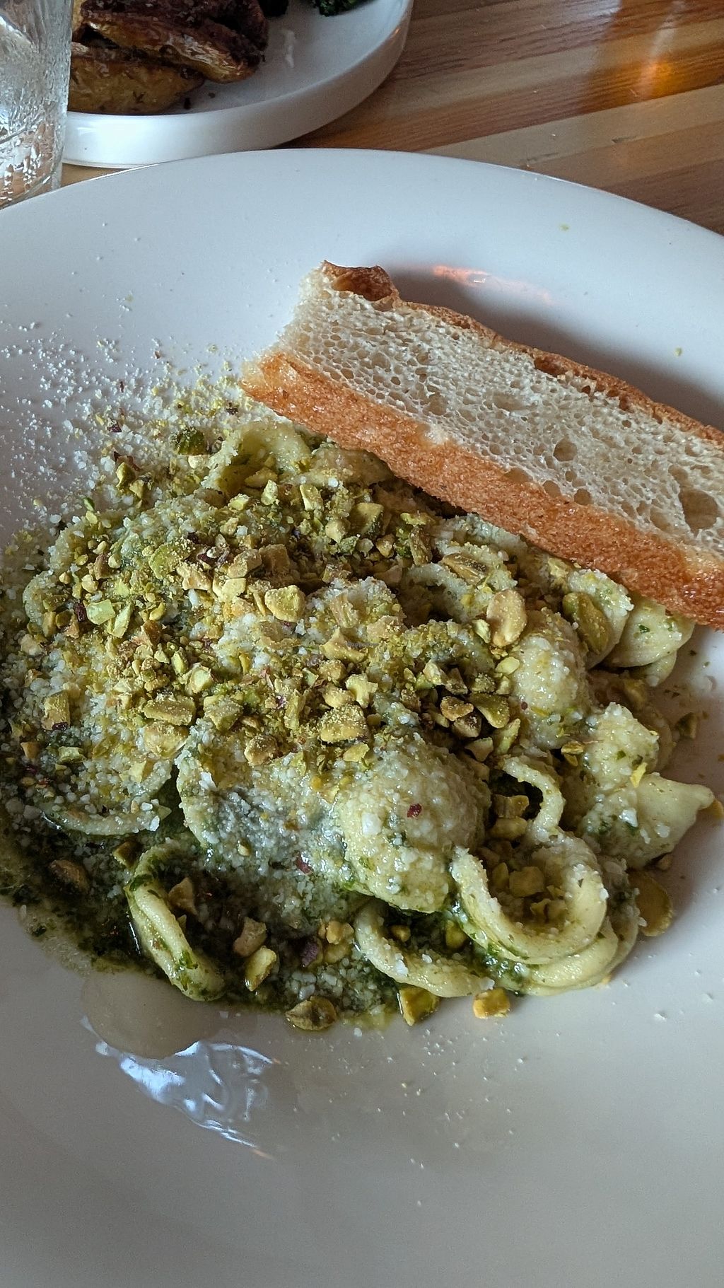I loved that there were clearly marked vegan and gluten free options. We started with the olives and bruschetta. YUM. I chose the vegan orecchiette and my MIL got the vegan/gluten free veggie lasagna. Delicious! The lemon olive oil cake was reported to be vegan AND gluten free (what a win)!