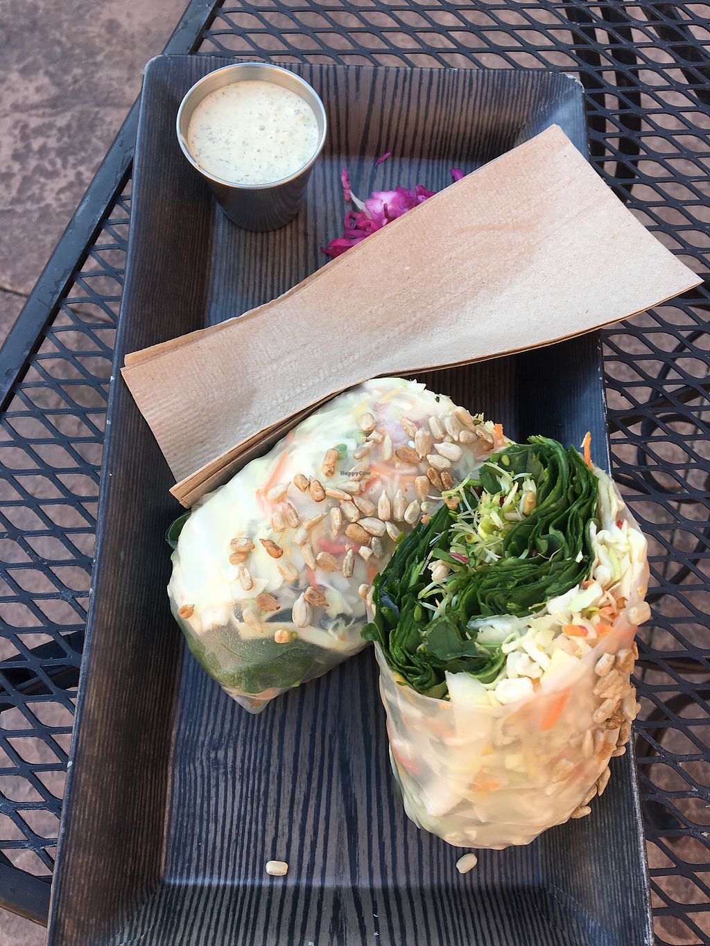 Love this place! Everything starts vegan (all sauces, dressings, wraps and dishes) then you can add "proteins" if you so wish. Me and my dad have come here a few times now and they are always extremely pleasant and helpful. I have somewhat of a strict diet and they are knowledgeable as to what is in what. I am gluten, corn and (mostly) soy free and I only do natural sugars. I can eat here easily. Do make sure to check though as I have to let them know my restrictions and they let me know what I can get or sub. But it never feels like a hassle or an inconvenience which I really appreciate. I've gotten the hand rolls/spring rolls and they are always delicious, as well as their special the "nachos" which we just do the sweet potatoes with all the fixings like black beans, green onions, topped with cheeze and ranch. So good! Be sure to check this little place out if you are in the area. West street market also has thali restaurant and sol kava tonic bar. So you can get your plant based eats on from different places in the same location.