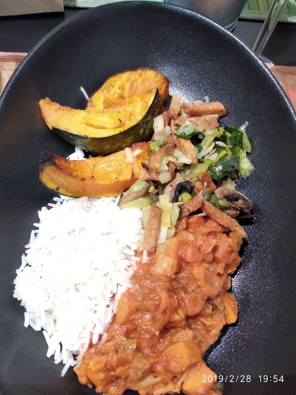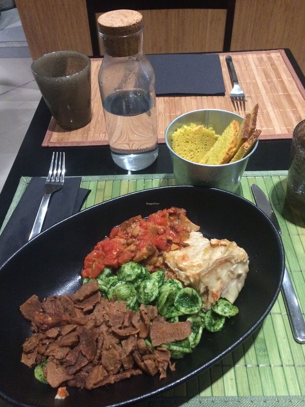 corn bread, lasagna, spicy pesto pasta, seitan and veggies and tofu st…