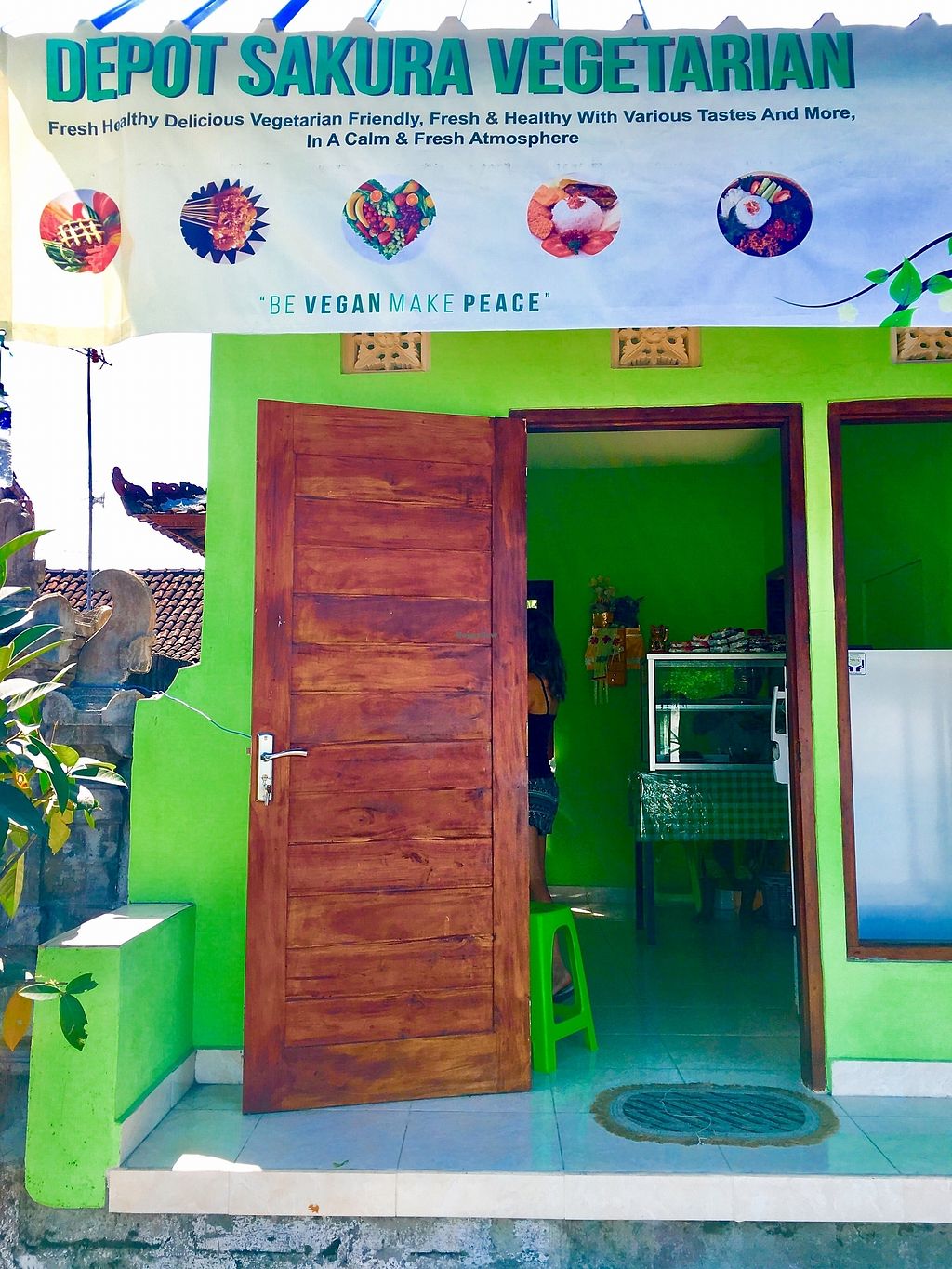Look for the vegan sign “Be vegan, Make Peace”
