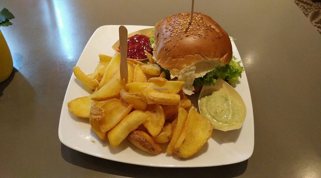 I had the vegan crispy chicken burger, which was absolutely delicious and tasted very much like real chicken - which was almost scary! The fries were also yummy and crispy - perfect!