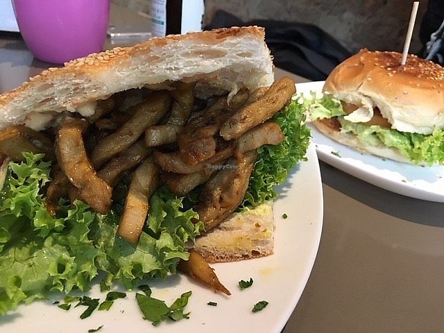 Good place for a quick bite. The crispy "chicken" were indeed very crispy, although the burger it didn't hold the form very well. The taste was good, however, and the sweet potato fries were super good.