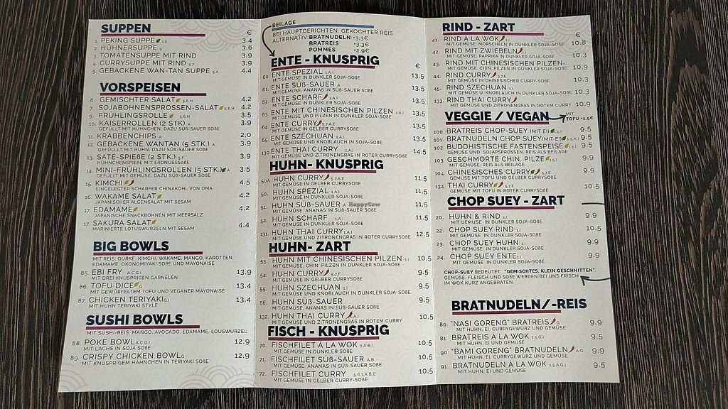 We often order food here, because they offer several tasty asian dishes. I can recommend Buddha's delight (buddhistische Fastenspeise) and the braised mushrooms. The vegan and vegetarian dishes as well as the spiciness are clearly labeled.