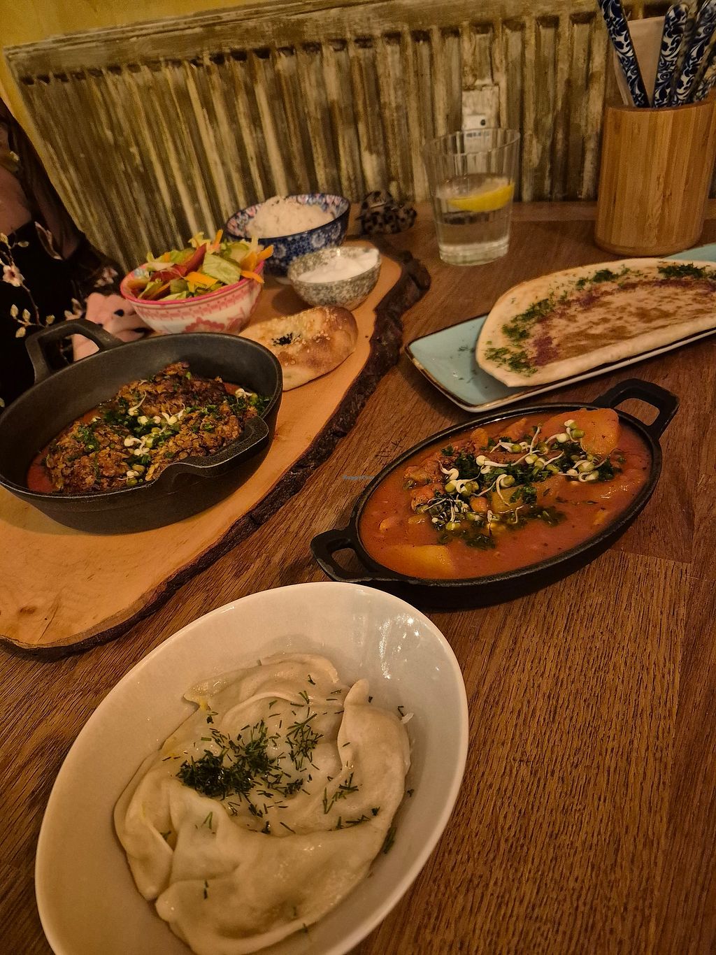 I’ve never had Uzbek food before. We had the stuffed flatbreads, Dervish stew and four sauces with mixed veg. It was very nice. Cash only.