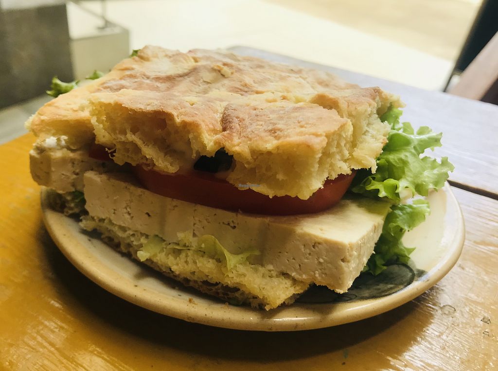 Arepas with delicious tofu scramble. The photo doesn’t do it justice.