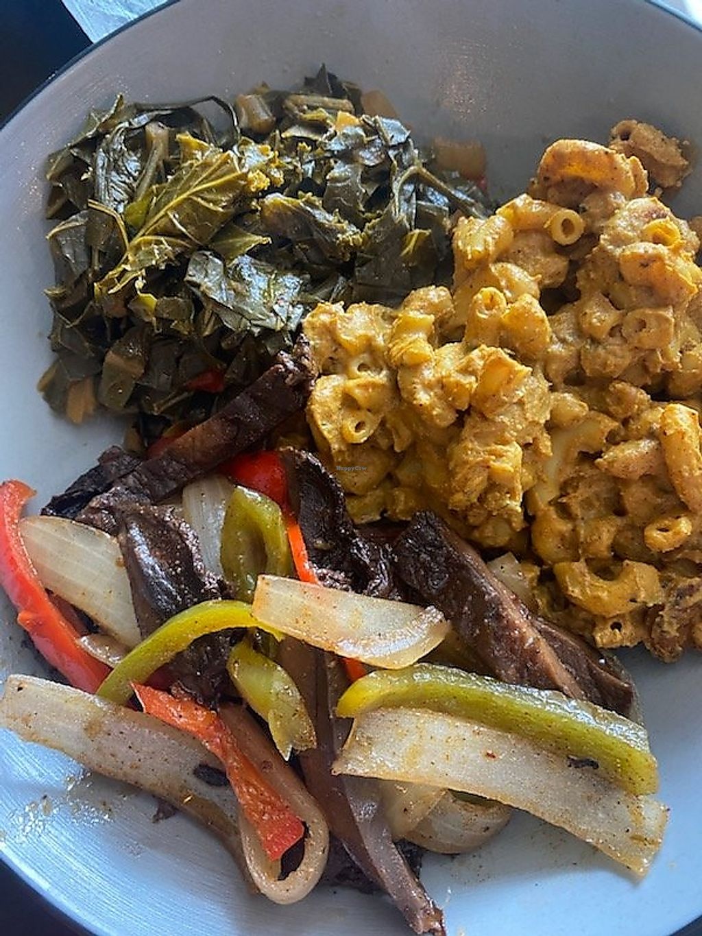 Jackfruit BBQ jerk and mushroom jerk with collards and Mac and the