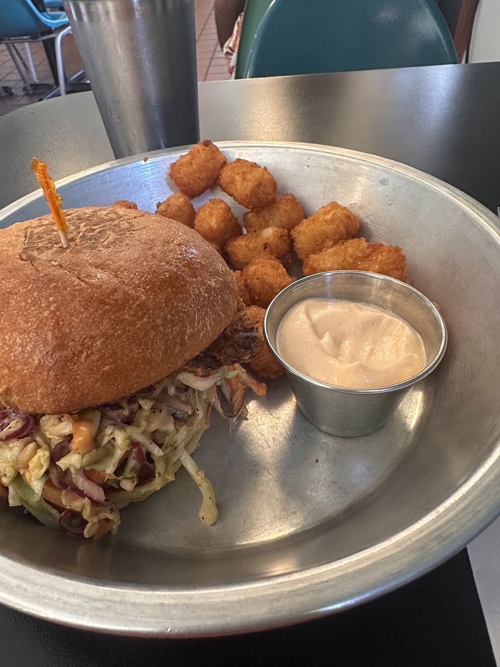 Fried Mushroom Sammy + beautifully spiced tots