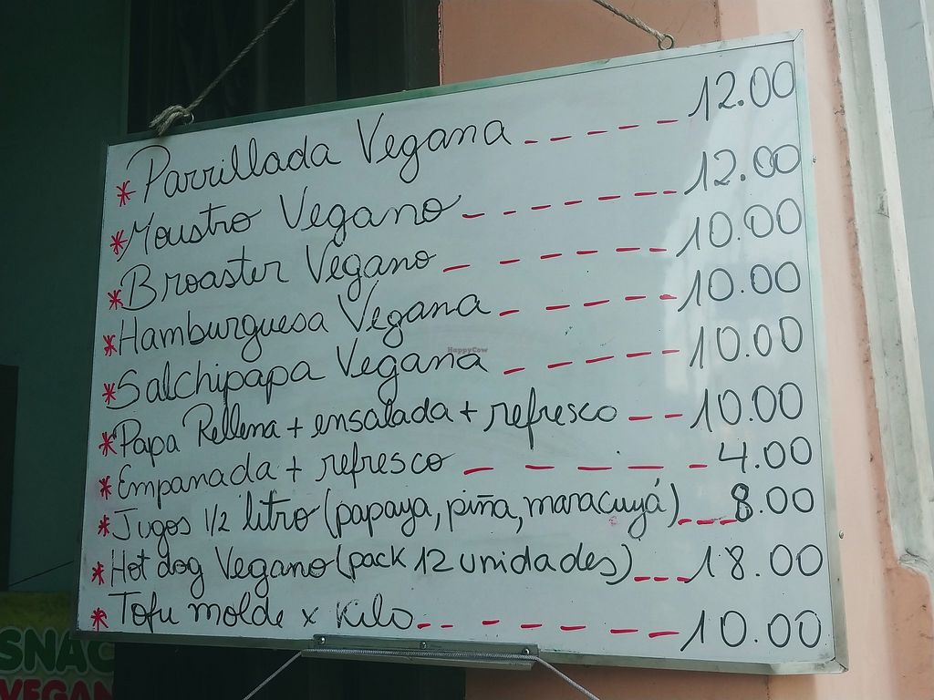 An all-vegan bistro/fast food restaurant. Serves hamburgers, papa rellenas, salchipapa, tofu and hot dogs, all of which are made with soy. Reported closed May 2024.