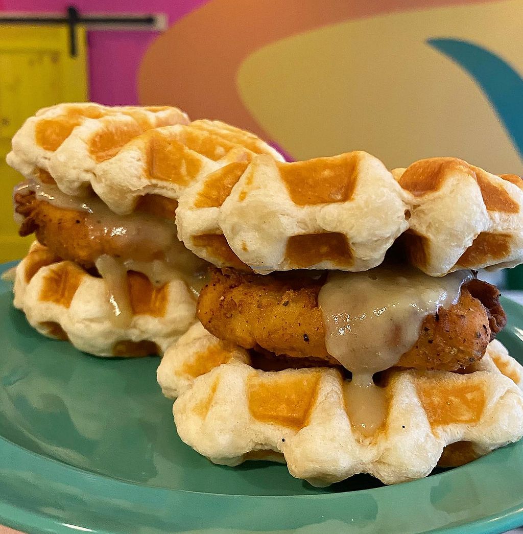 vegan chicken and waffle sliders