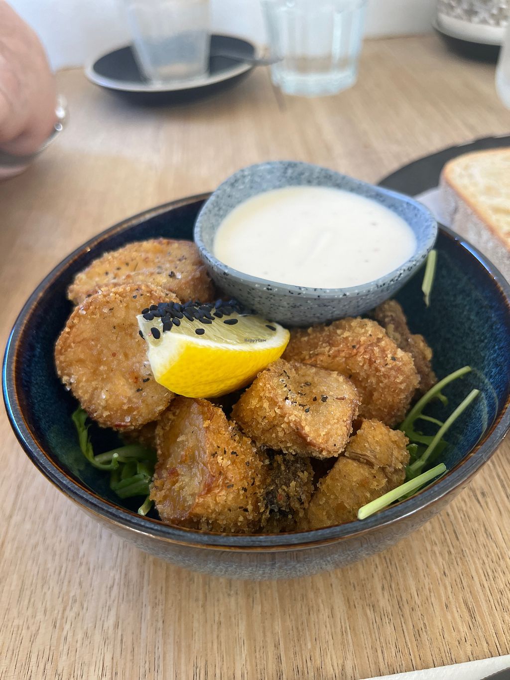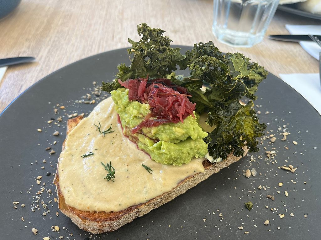 Butter beans on pumpkin sourdough with pine nuts and parmezan