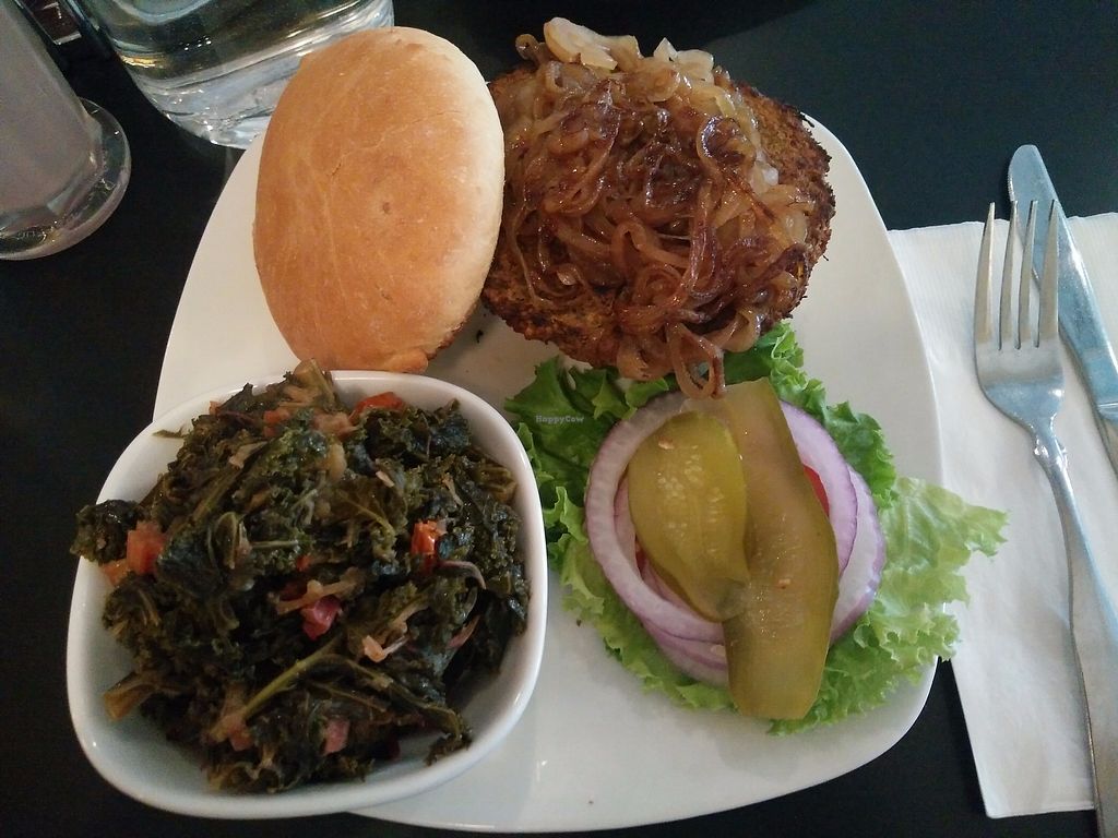 I ordered the BBQ tempeh burger with a side of collard greens. NOW, the sides were great- the cole slaw and greens tasted fantastic, but they are hard to screw up. The burger didn't taste like the tempeh had enough flavor and it was filling, but again, not full of tons of flavor. I've heard they are usually good, so I would give it another chance. Also, they have a good drink menu.