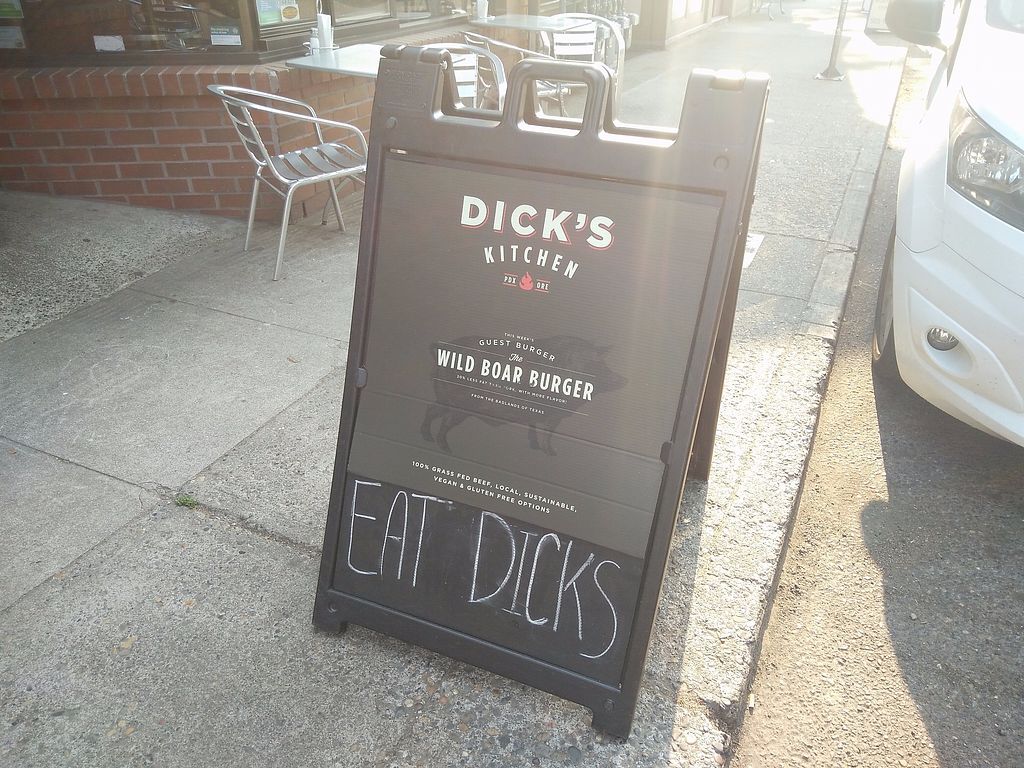 Dick's is a good place to go with non vegans. They have good vegan shakes, and they have really good collard greens!