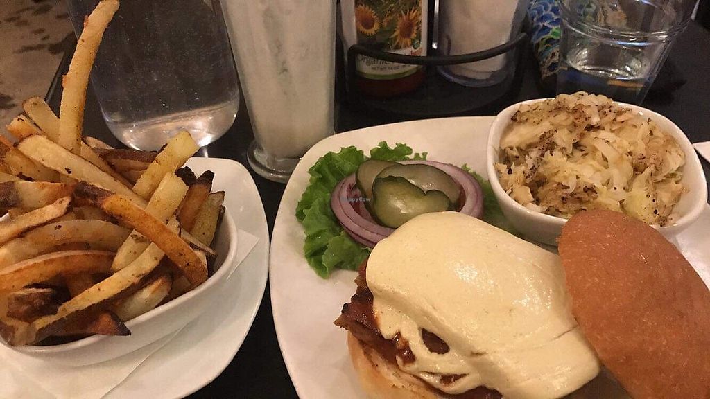 The milkshake brought this boy to the yard, and it did not dissapoint. Not only is it vegan, they have a separate mixer dedicated to the vegan shakes. The tempeh BBQ burger was very good too. When I asked to be sure the sauce was vegan, the server drew the correct conclusion that I wanted a fully vegan dinner.