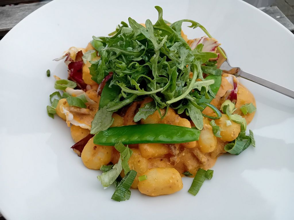 Gnocchi mit cremigem Sauerkraut, Rosenkohl, Radiccio uvm