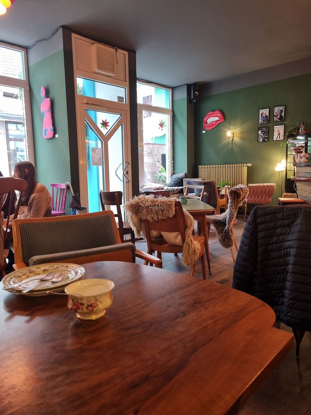 Tolle Atmosphäre, sehr nettes Personal. Alle Kuchen vegan (und mega lecker!). Hafermilch ohne Aufpreis. Die Toiletten waren auch super schön und sauber. Und Hunde sind willkommen.