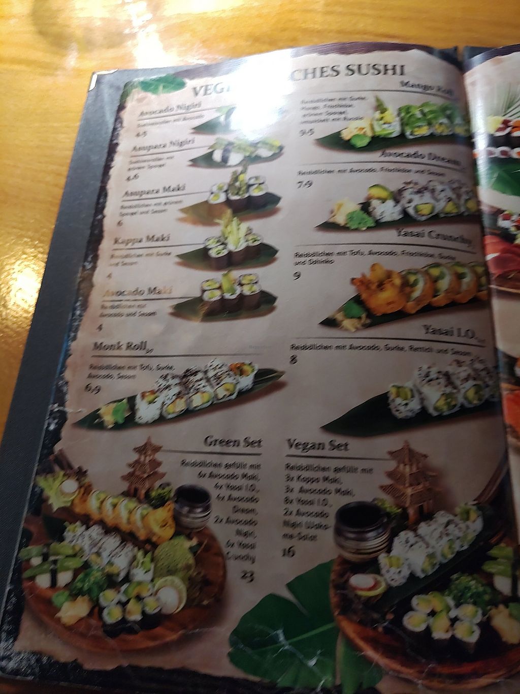 Suschi mit Avocado, Gyoza Veggi, Edamame und Veggi desserts
