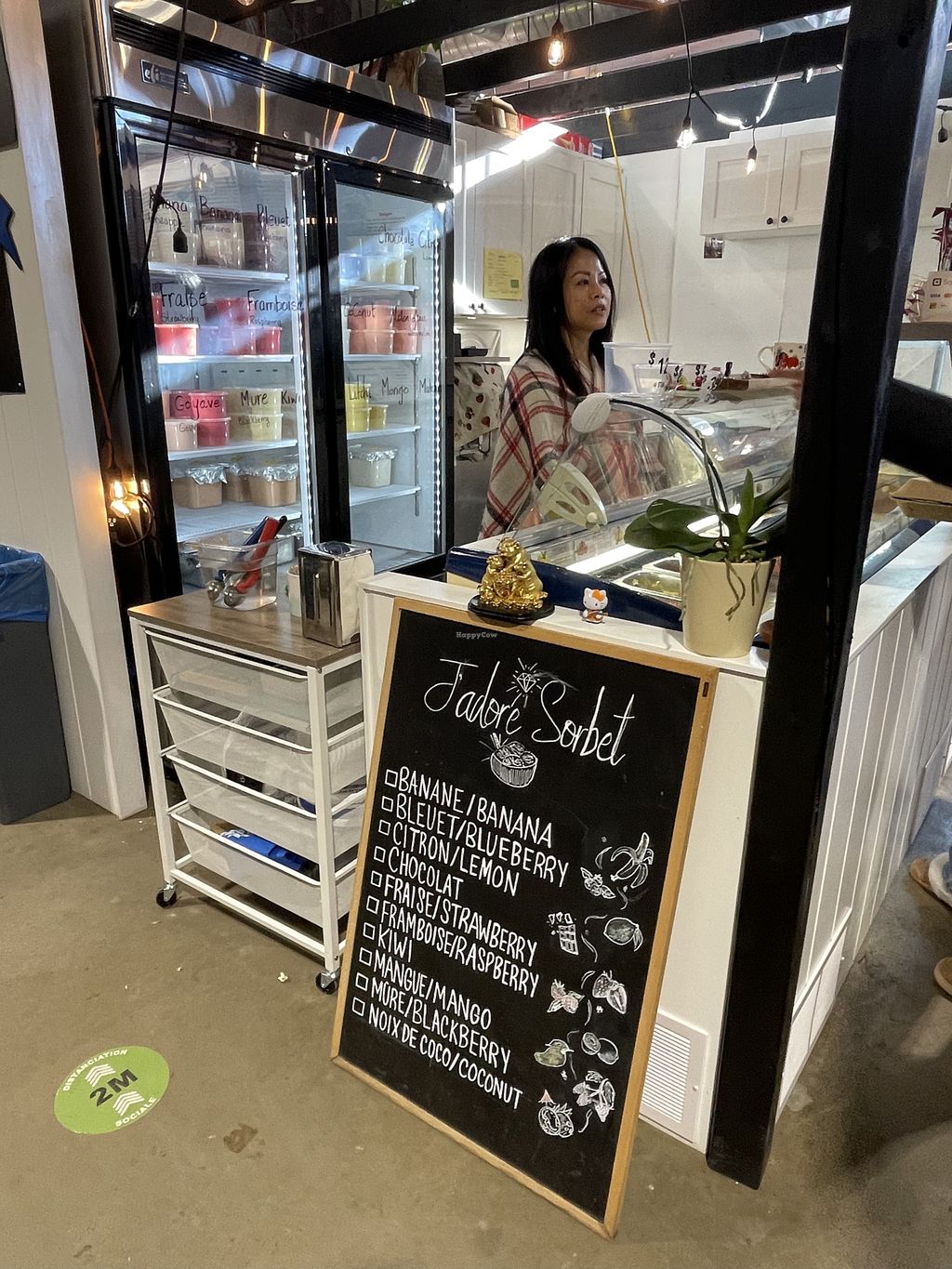 There's a vendor that does sorbet which is vegan. And several vendors that do Indian food and falafels and stuff that I haven't inquired about but assume there may be some vegan options there. Nico's bakery most of their regular breads are vegan and they make vegan cookies but I didn't see them when I was there but they could have sold out. Of course fresh produce vendors are there as well. Adorable chocolate offer vegan chocolate, most of their dark chocolate is safe. And there's a place with fresh juices and smoothies.