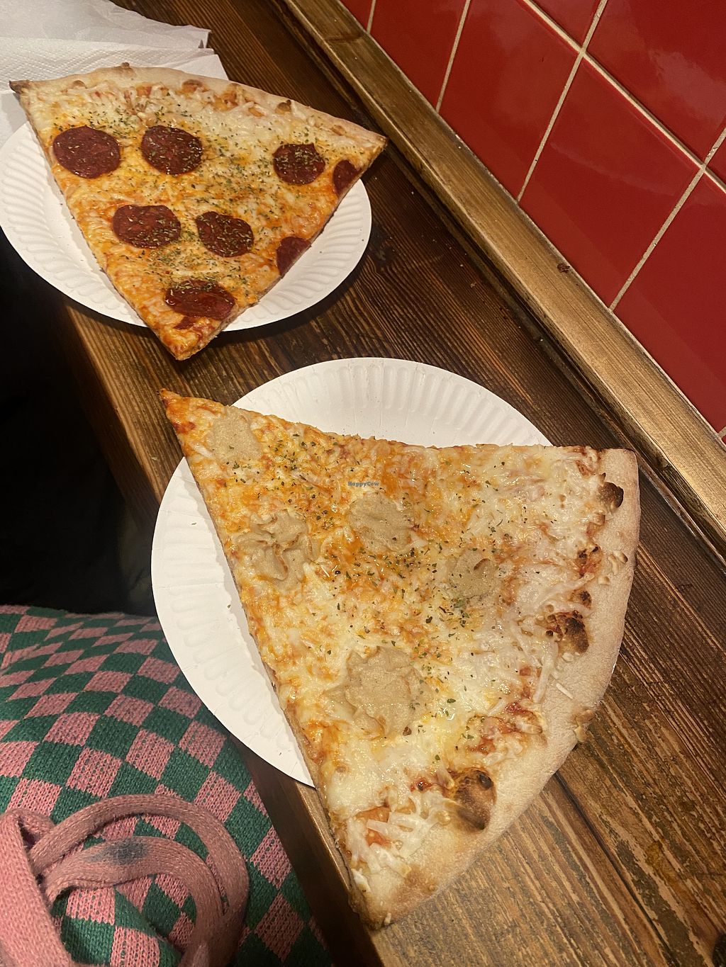 Vegan pizza slice with cashew "ricotta"