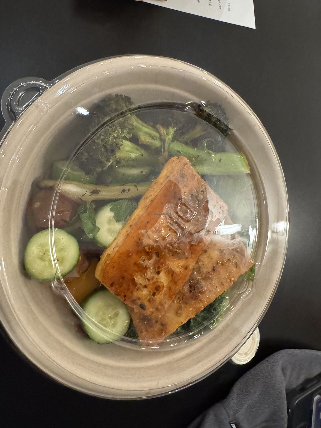 The place doesn't look like a flashy place and the preparation is quick, but the ingredients are quality and the vegan choice quite satisfying. I had a bowl with wheat, avocado, fried tofu, broccoli and vegan ranch sauce. The seasoning was perfect and the whole thing was very enjoyable. On the downside, the portions are a little small if you're very hungry, and the place doesn't really have much of an atmosphere. But it's perfectly convenient for a quick lunch or takeaway.