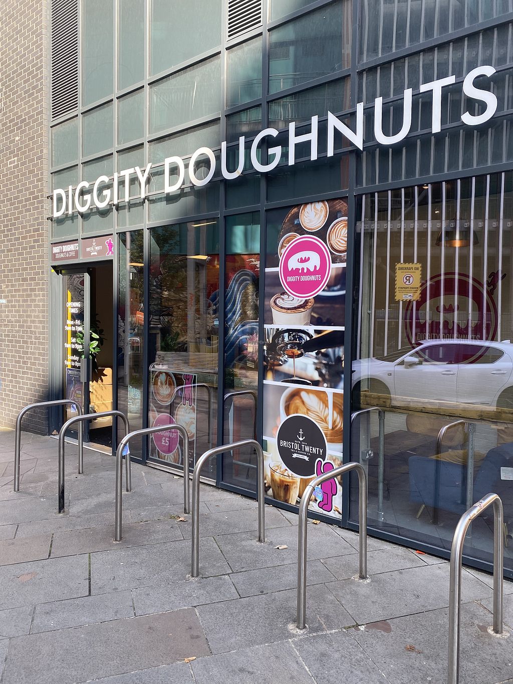 Sourdough doughnut shop with a range of vegan doughnuts such as Lotus Biscoff ring and filled peanut butter raspberry. Reported closed March 2023.