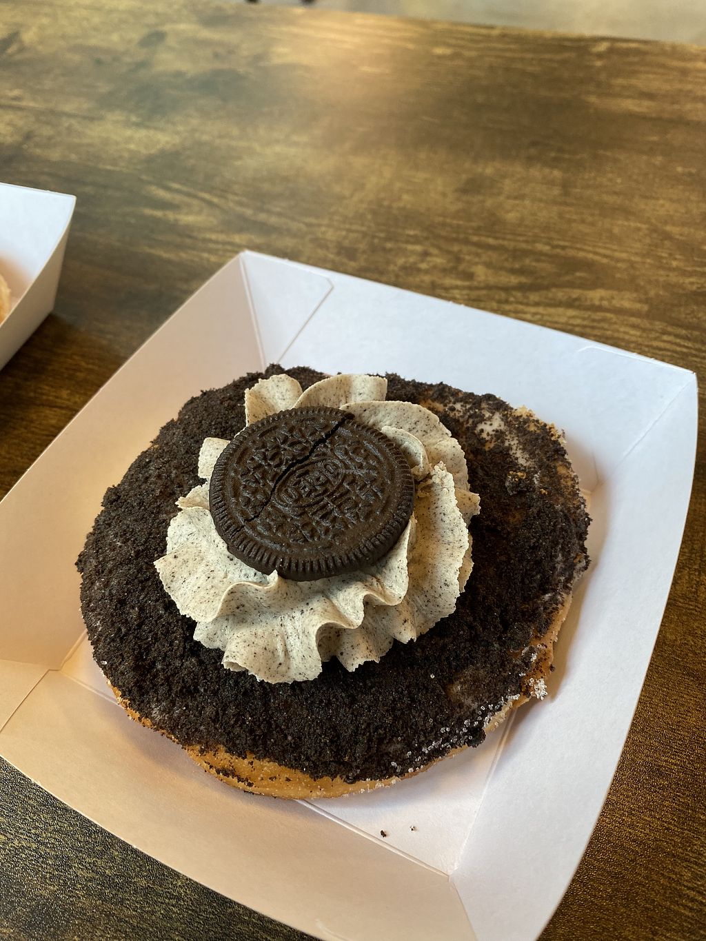 Doughnuts are big and delicious. Many vegan flavours to choose from and new flavours are always rotating in. There is usually a list of the current vegan flavours on the counter