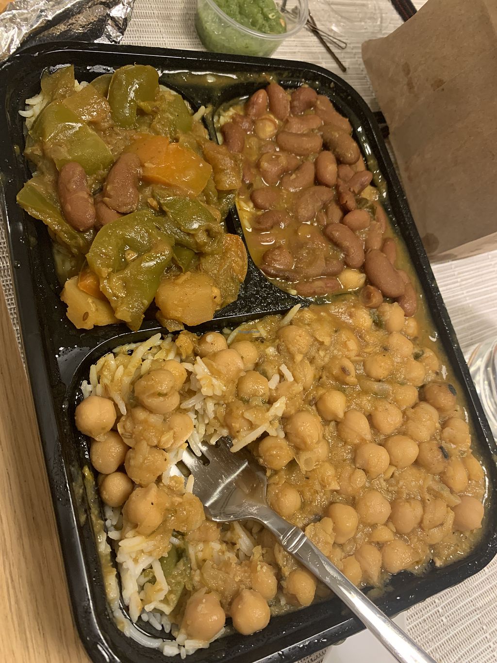 Three currys and rice with extras