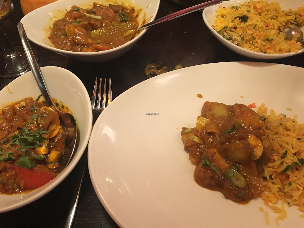 Serves meat, vegan options available. Indian restaurant, nice setting. Menu includes a vegetarian section with vegan options. Removed June 2022 - limited vegan options.