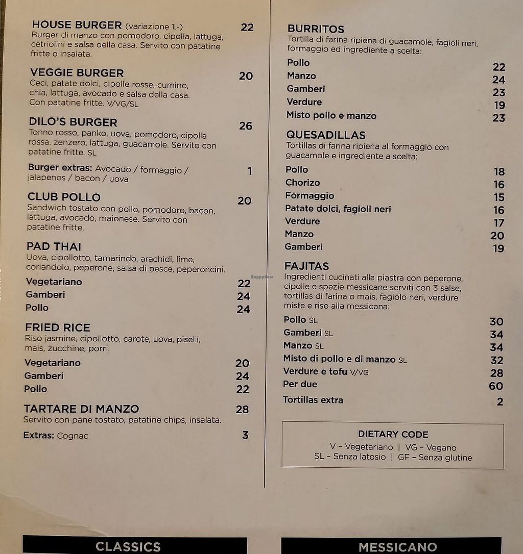 *Alcuni piatti presenti solo nella versione vegetariana e non in quella vegana