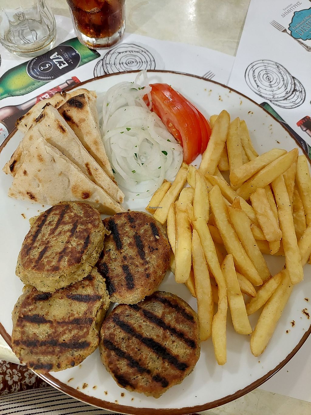 The menu offers a small vegan section, there are also some vegan options with the appetizers. The falafel can either be served as a plate or in a pita wrap. It was delicious and the staff was very friendly. You can sit outside which is nice but it's directly situated on a street corner, so a little bit more background noise.