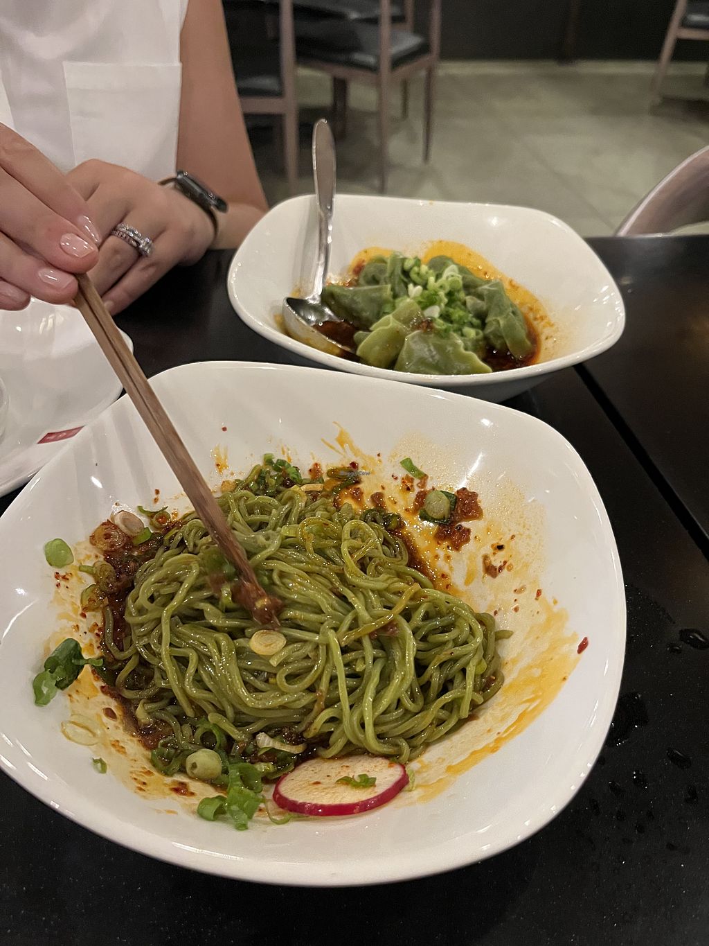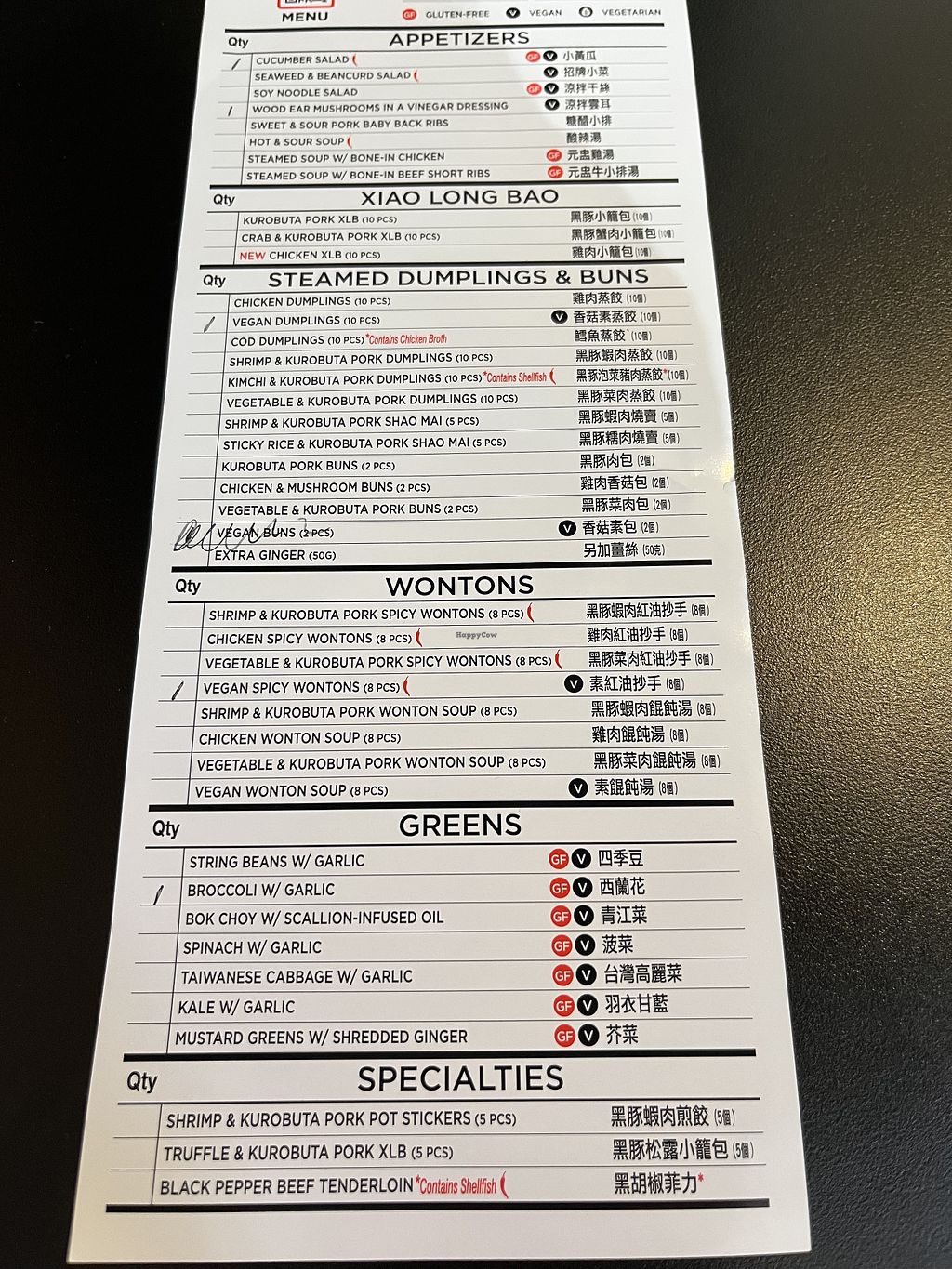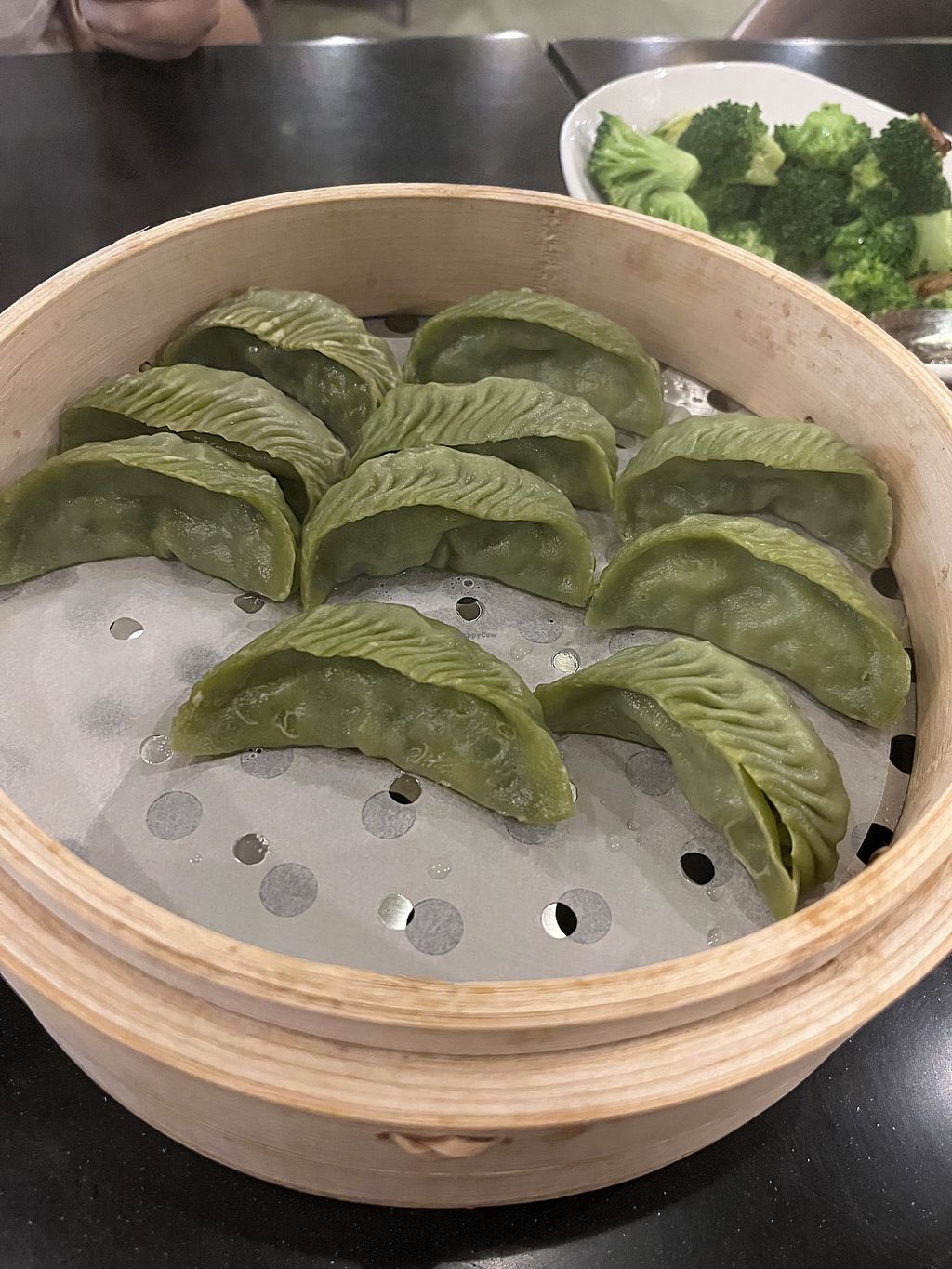 Green beans, vegan dumps, vegan bao not pictured