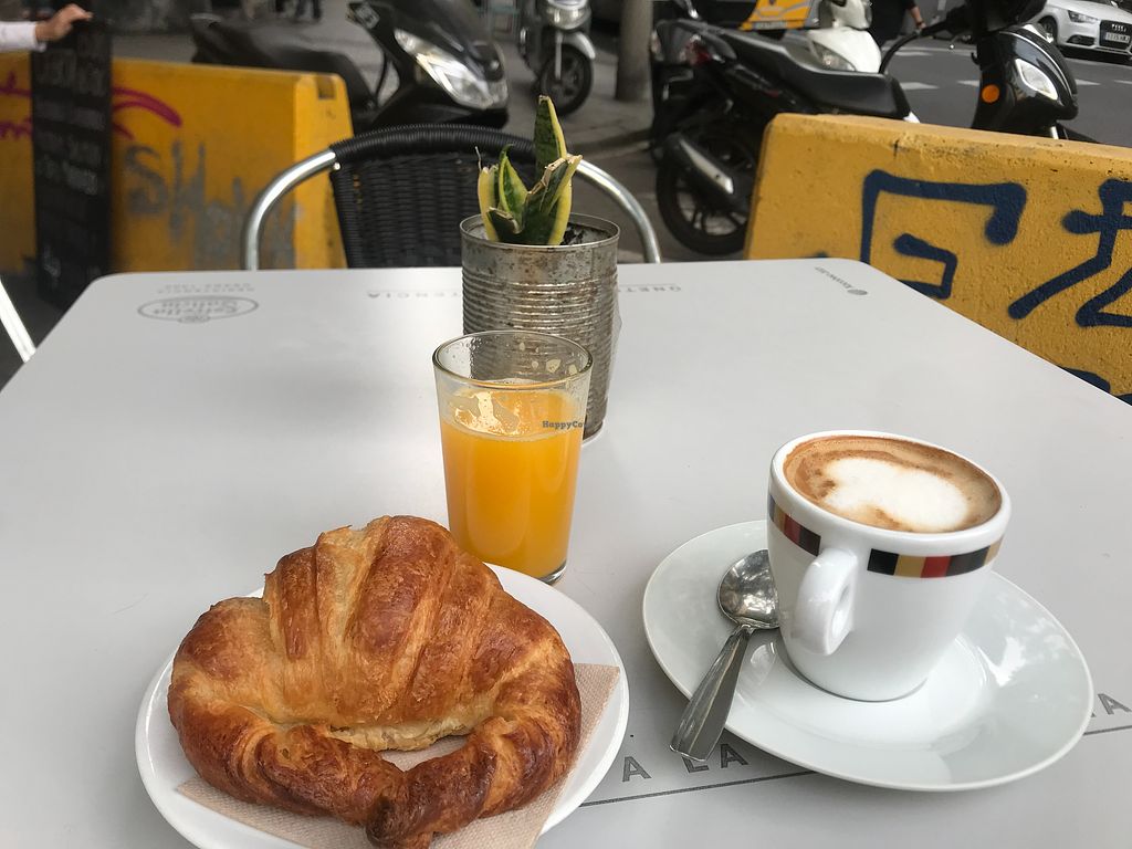Cosy cafe, relaxed atmosphere, great tunes, friendly owners. Had a delicious tomato and cheese tostada, freshly squeezed OJ and a cortado. Just wish we had found this place before our last day in Barcelona! Would have liked to try a veggie platter 😊
