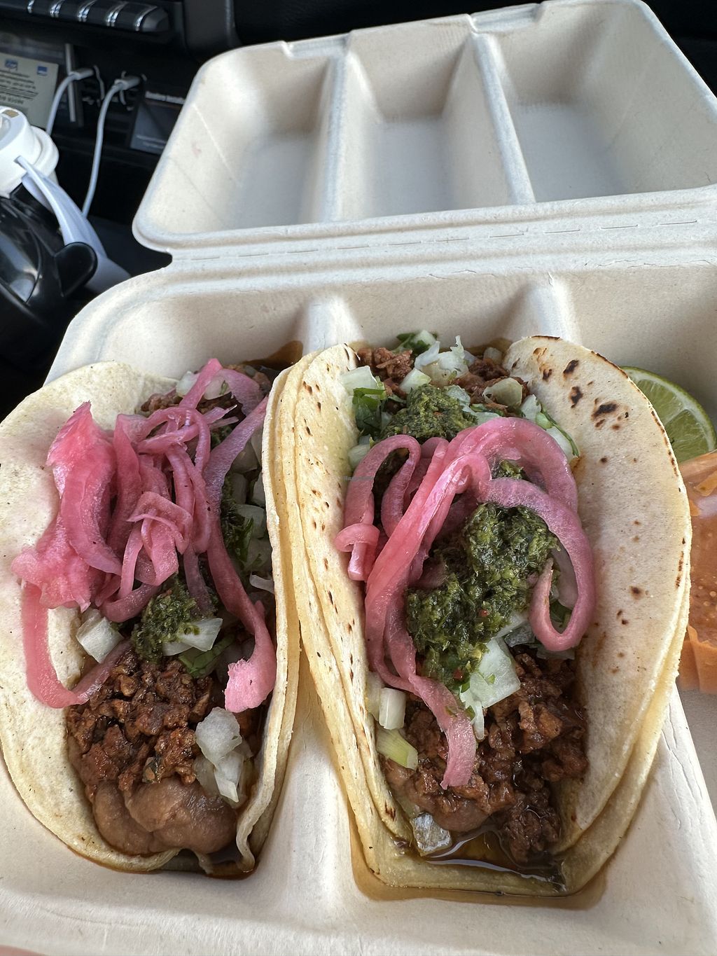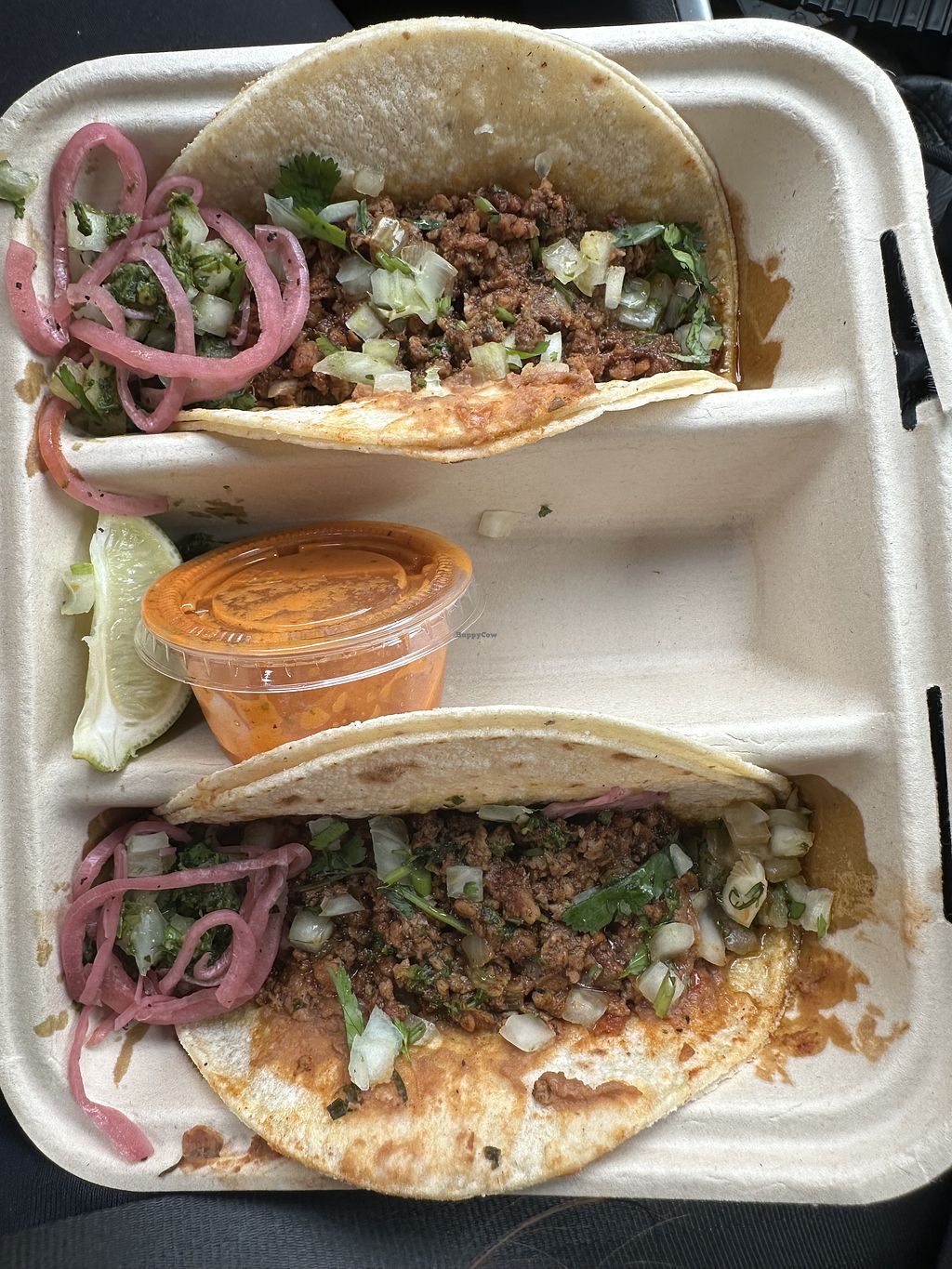 Ordered four vegan tacos, a vegan quesadilla, chips and guac, and two meat tacos. The meat tacos were packaged with the steak and chicken tacos and their juices and sauce had leaked out and were on the vegan tacos. There was also cheese in the vegan tacos from the chicken taco. The guac is listed as $7.28 on the menu but we were charged $12.50. I called to let them know they needed to package the vegan and the meat separately and she refunded me for the four vegan tacos. Two chips and guac, 6 tacos, and a quesadilla was $84.16. It’s always so exciting when somewhere new has vegan options but we didn’t get to actually try the tacos.