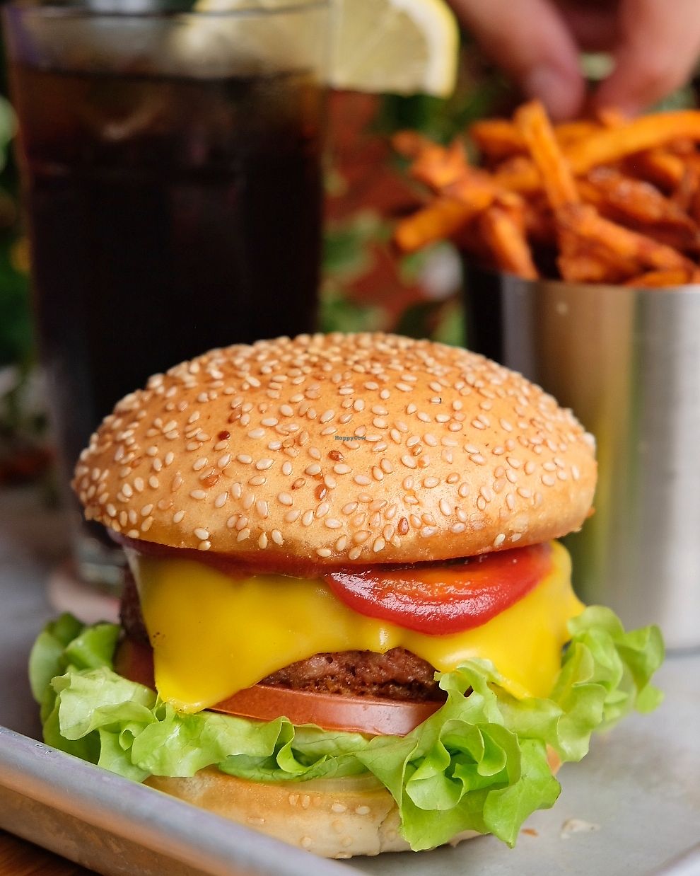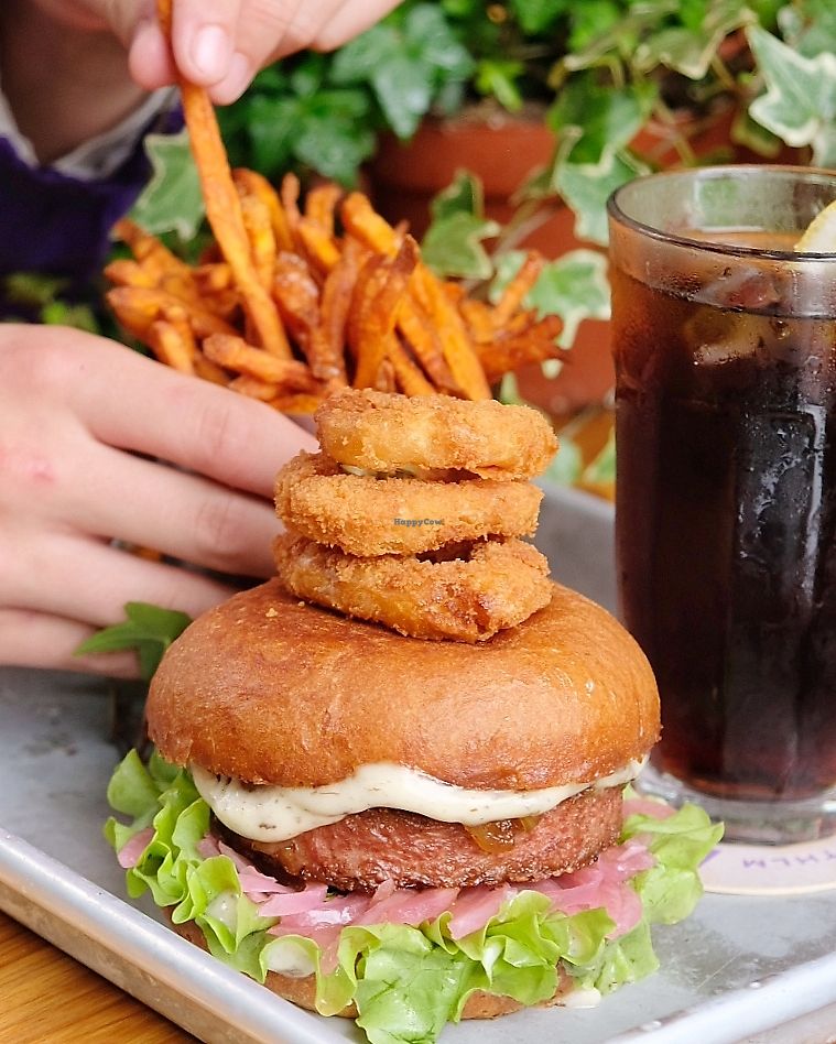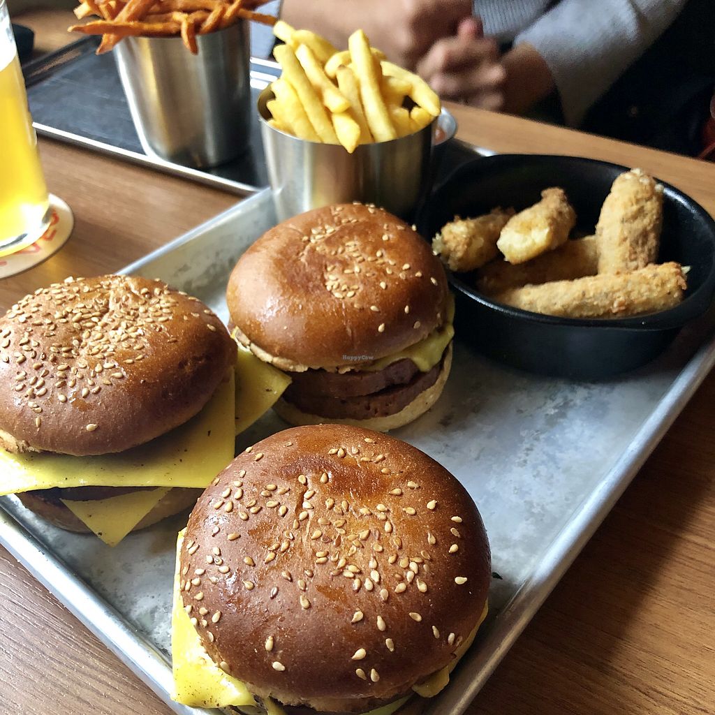 Cheesy burger, two onion burgers, buffalo cauliflower, truffle mayo, f…