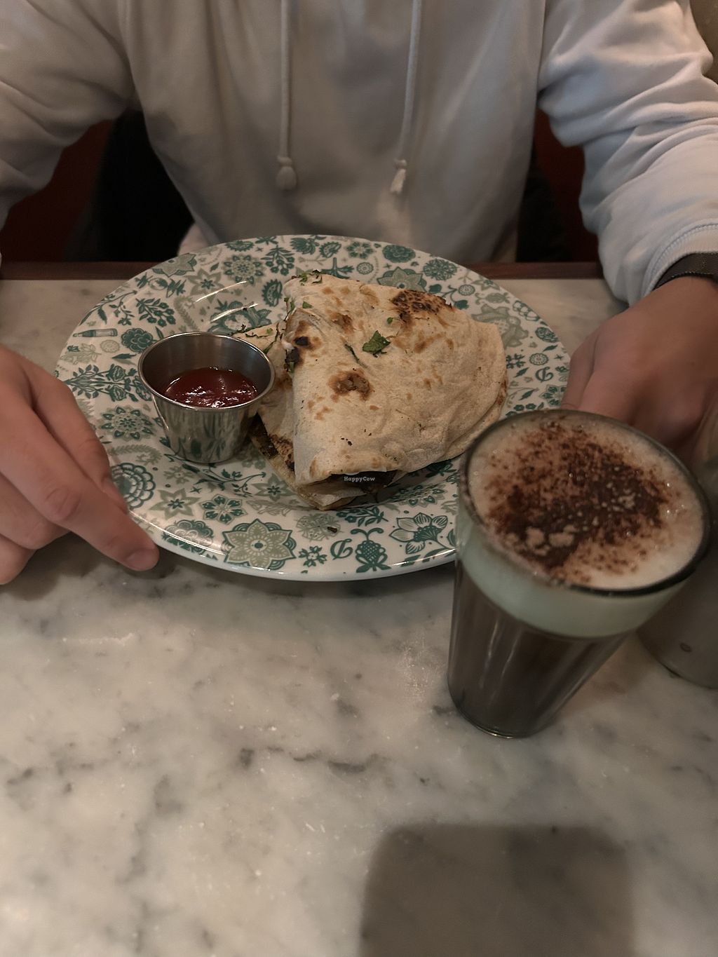v sausage breakfast naan and chocolate chai
