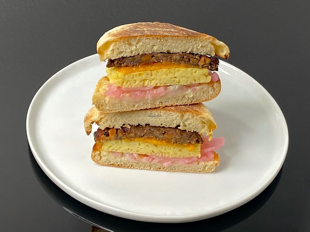 smoky vegan sandwich (cut in half + plated at home)