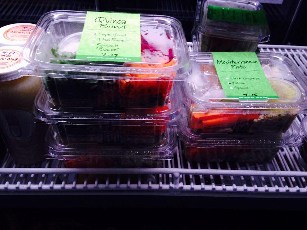 This place is all vegan in the food offerings. Although a very small menu of about half a dozen items, the food is vegan and mostly raw. Expect some zucchini noodles with tasty sauces, vegetable leaf wraps or quinoa bowls. However, the food is pre-made. This is good and bad - you can pick it up to go, or you can open the plastic containers of the pre-made food and sit at the community table and look out the window, or, just chill with your phone or read a book or magazine.