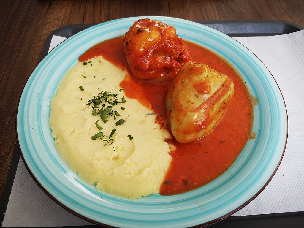 The place is incredible. We had vegan veggy patty accompanied mashed potato and vegetable. We also had filled pepper. Incredible, tasty, and very cheap. Recommended to everyone who is vegan or vegetarian. It's just 5min walk from the library (aka edge of old town)