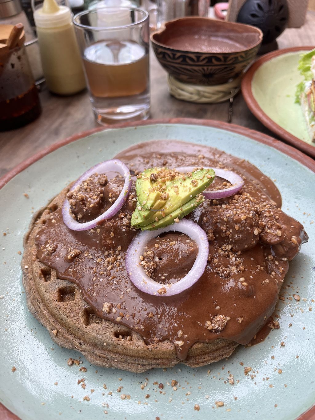The vegan waffle was really interesting! The prehispanic cacao drink was lovely! The chocolate and whole wheat sourdough in the shop are great too! Will be going back!!