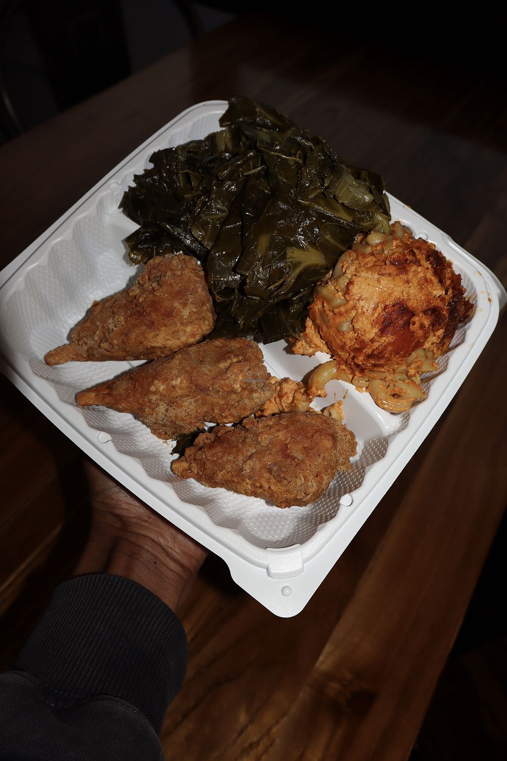 The ribs with seafood mac and cheese and collard greens! All vegan ❤️